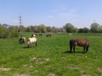 Im Sommer stehen unsere Ponys 24 Stunden am Tag im freien, entweder auf einem extra dafür vorgesehenen Paddock oder stundenweise auf der angrenzenden Wiese.